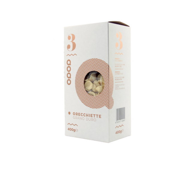 Il formato tipico della cucina pugliese: ruvida e porosa all’esterno, liscia ed accogliente all’interno, l’orecchietta saprà conquistare anche i palati più esigenti. Anche perché è ottenuta da un’accurata selezione di grani duri italiani al 100% .