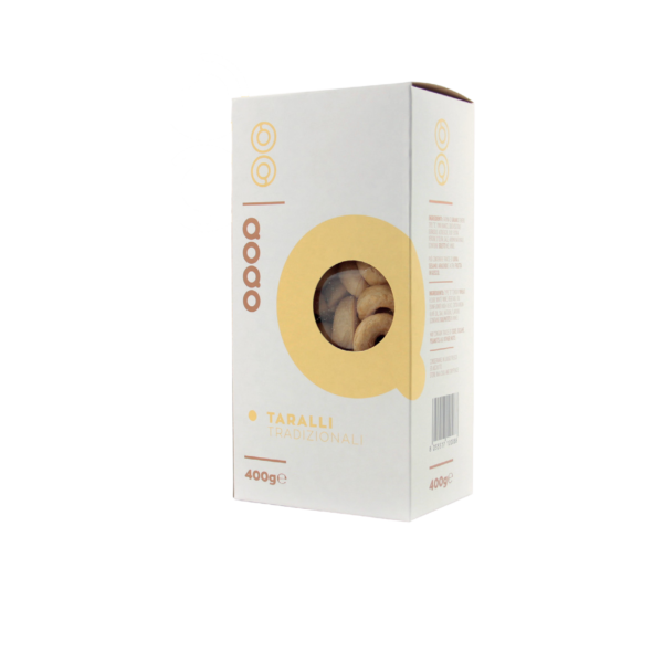 Fiore all’occhiello della tradizione pugliese, i taralli rappresentano un prodotto autentico, genuino e incredibilmente gustoso. Come da antica ricetta, farina di grano tenero, olio extra vergine d’oliva e vino bianco si mescolano in un equilibrio perfetto: tre ingredienti semplici, un sapore inimitabile.